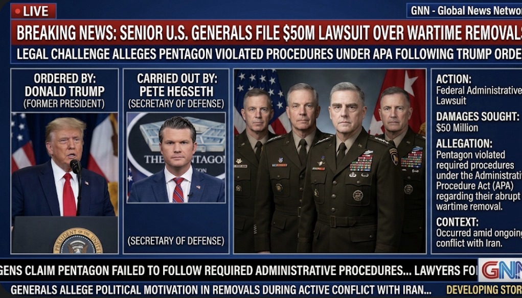 A Group of senior U.S. general files a $50m federal administrative lawsuit challenging Their wartime removal by Pete Hegseth on Donald Trump’s Order amid Iran’s war, alleging the Pentagon violated required procedures under the Administrative Procedure Act