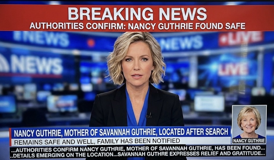 Nancy Guthrie, the mother of television journalist Savannh Guthrie , has been found safe after being reported missing earlier this week, bringing a wave of relief to her family, friends, and supporters.