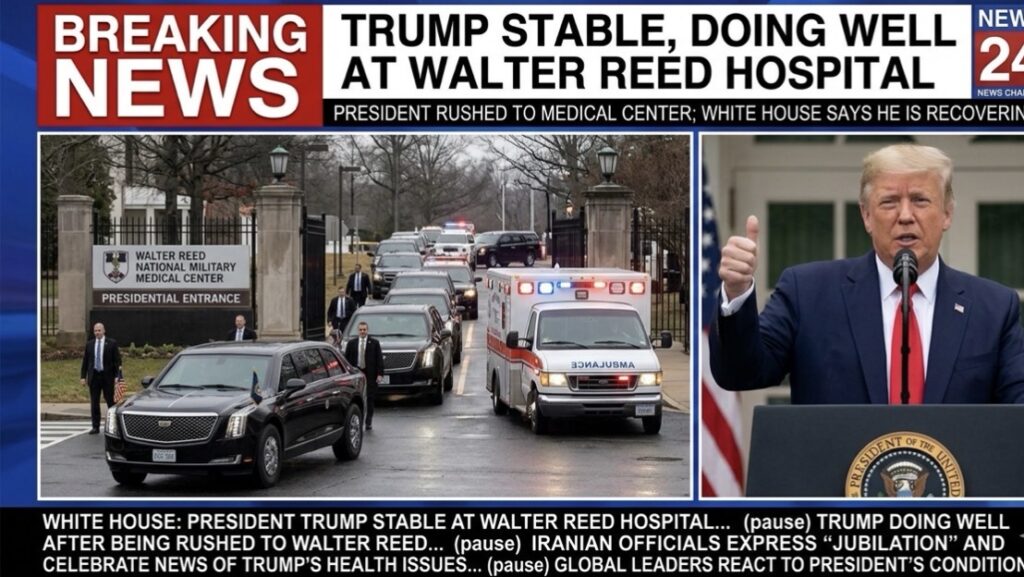 BAD NEWS: After being rushed to Walter Reed Hospital, President Trump is now stable and doing well amid Iran’s Jubilation