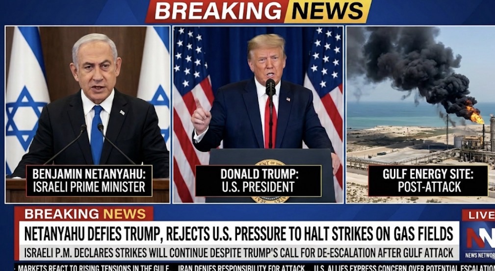 Benjamin Netanyahu Defies Donald Trump, Declares Israel Will Not Halt Strikes on Iran’s Gas Fields Despite Direct U.S. Pressure to De-escalate Conflict following Iran’s attack on Gulf Energy Site
