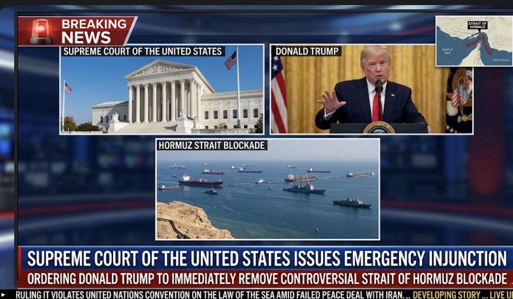 BREAKING: Supreme Court of the United States Issues Emergency Injunction Ordering Donald Trump to Immediately Remove Controversial Strait of Hormuz Blockade Ruling it Violates United Nations Convention on the Law of the Sea amid Failed peace deal with Iran