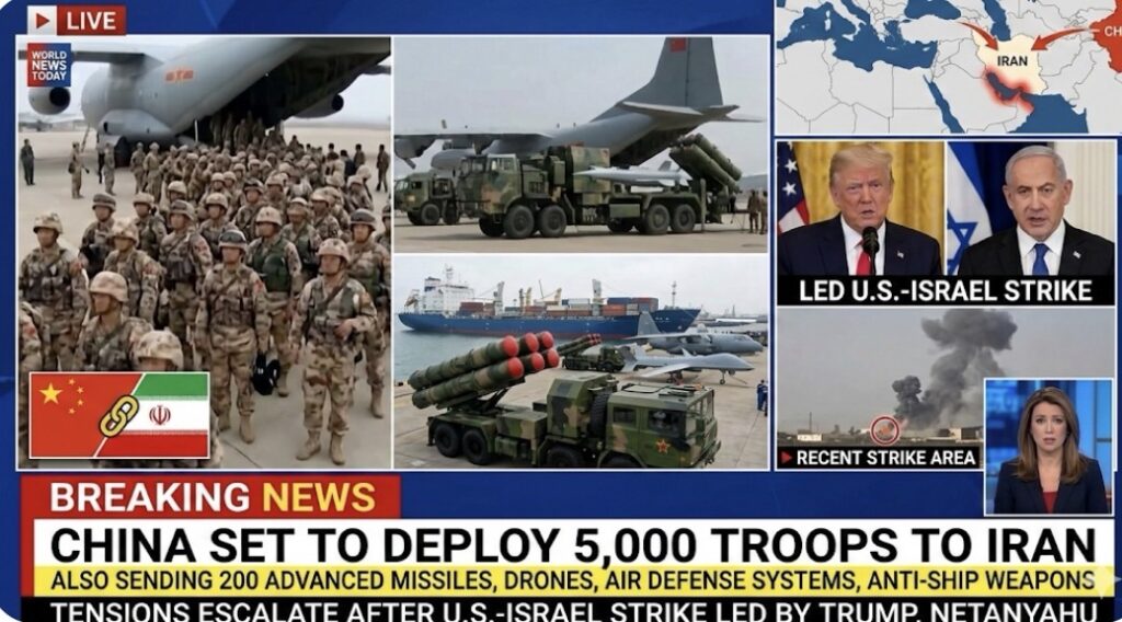 China Set to Deploy 5,000 Troops to Iran Alongside 200 Advanced Missiles, Drones, Multiple Air Defense Systems, and Anti‑Ship Weapons, Escalating Tensions After U.S. and Israel Strike Led by Donald Trump and Benjamin Netanyahu