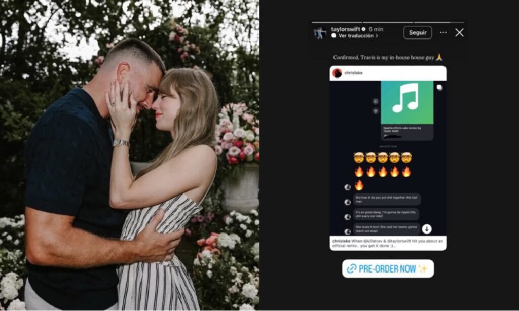 The moment came after DJ and house music producer Chris Lake shared an adorable (and now-viral) screenshot series of his DM conversation with Kelce, revealing how the Kansas City Chiefs tight end helped bring Lake’s high-energy remix of Swift’s track “Opalite” to life. Swift reposted the exchange to her own Stories with the caption: “Confirmed, Travis is my in-house house guy ” — a clever double entendre blending “house husband” vibes with the literal house music genre.