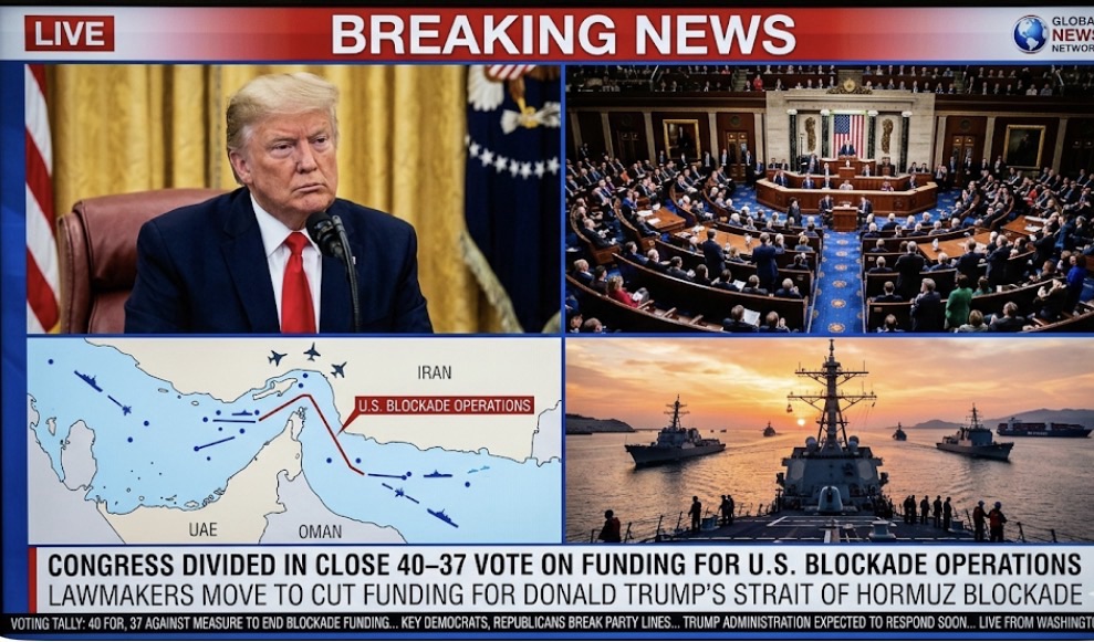 Congress Divided in Close 40–37 Vote as Lawmakers Move to Cut Funding for Continued Donald Trump’s led U.S. Blockade Operations in the Strategic Strait of Hormuz