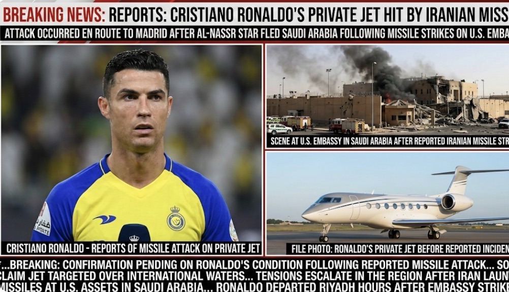 Reports have emerged that Cristiano Ronaldo’s private jet was caught in the chaos at Tehran airport as tensions escalated in the Middle East, with unverified claims suggesting the aircraft was targeted amid a missile attack near the U.S. embassy.