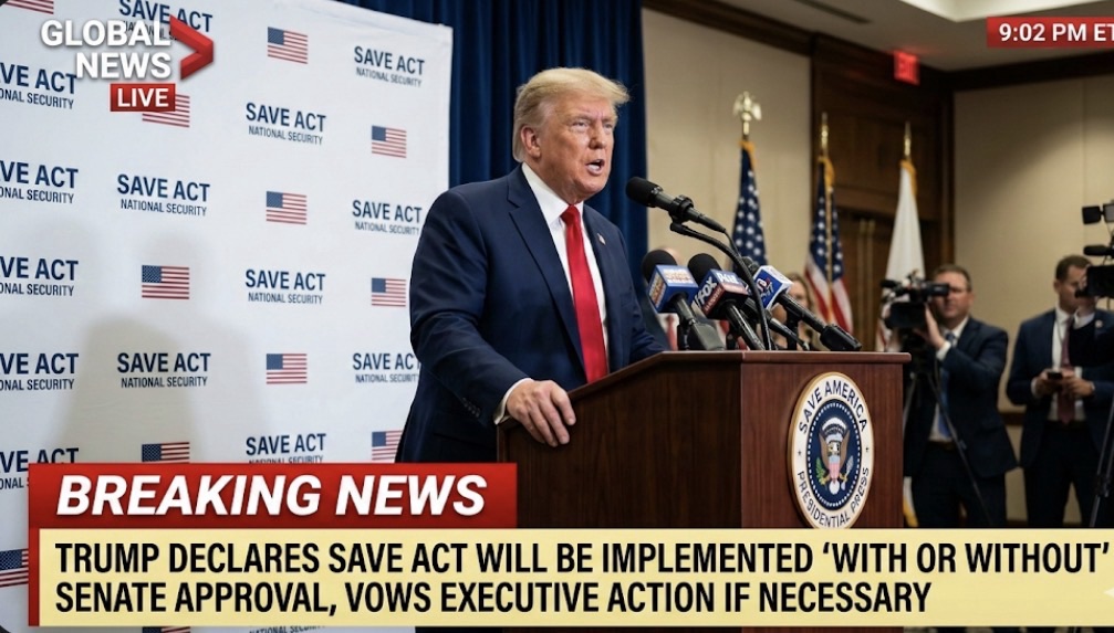 Donald Trump Declares SAVE Act Will Be Implemented “With or Without” Senate Approval, Vows Executive Action if Necessary