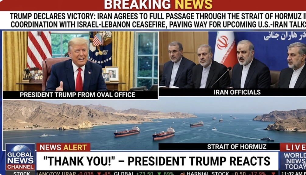 Donald Trump Declares Victory as Iran Agrees to Full Passage Through the Strait of Hormuz in Coordination with Israel-Lebanon Ceasefire, Paving Way for Upcoming U.S.-Iran Talks “Thank You!” – President Trump Reacts