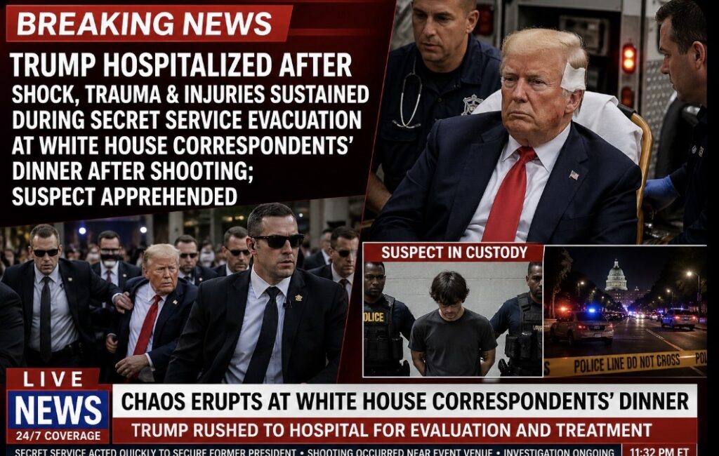 Donald Trump Hospitalized After Suffering Shock, Trauma, and Minor Physical Injuries During Secret Service Evacuation From White House Correspondents’ Dinner Following Nearby Shooting; Suspect Apprehended