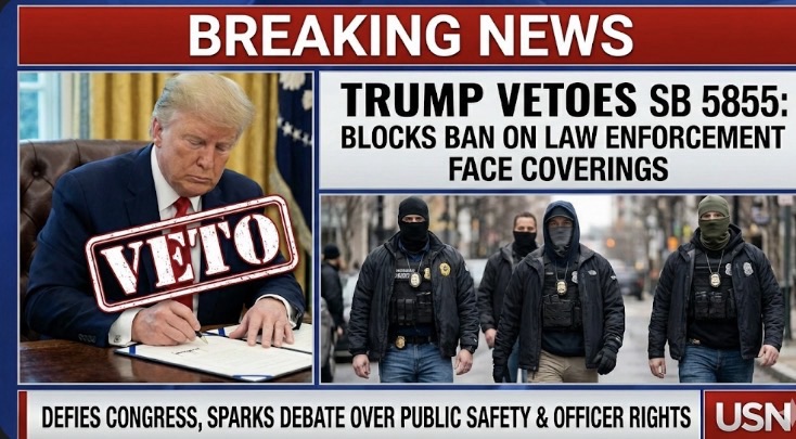 Donald Trump Issues Veto on Senate-Passed SB 5855, Defying Congress by Blocking Law That Would Bar Law Enforcement Agents From Wearing Face Coverings, Sparking Fierce Debate Over Public Safety and Officer Rights