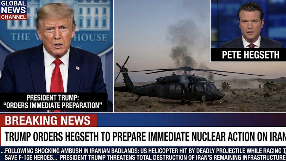 BREAKING: Trump Orders Hegseth to Prepare for Immediate Nuclear Action Against Iran After Shocking Ambush in Iranian Badlands Leaves US Rescue Helicopter Destroyed by Deadly Projectile While Racing to Save Downed F-15E Heroes – President Threatens ‘Total Destruction’ of All Remaining Iranian Infrastructure