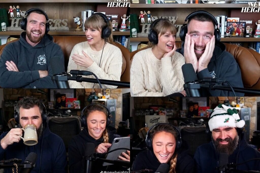 Fans Are Losing It Over This Unfiltered New Heights Podcast Moment Featuring Travis Kelce, Taylor Swift, Jason Kelce and Kylie Kelce