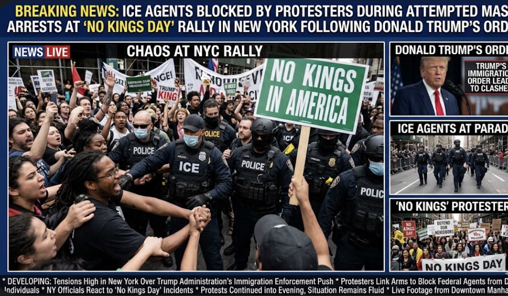 ICE Agents Blocked by Protesters During Attempted Mass Arrests at “No Kings Day” Rally in New York After Donald Trump’s Order