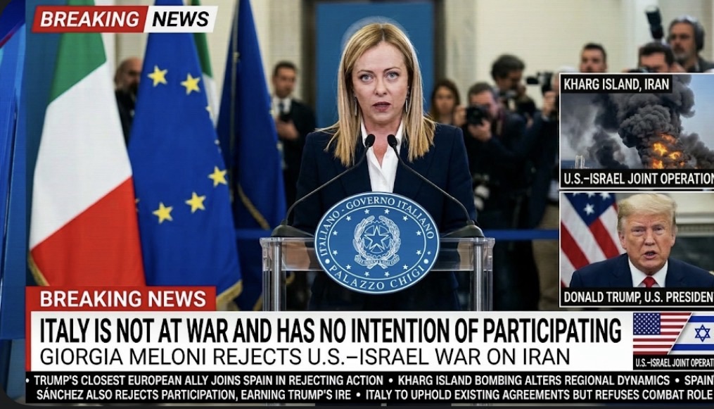 “Italy Is Not at War and Has No Intention of Participating,” Says Giorgia Meloni as Donald Trump’s Closest European Ally Joins Spain in Rejecting U.S.–Israel War on Iran after the Bombing of Kharg Island