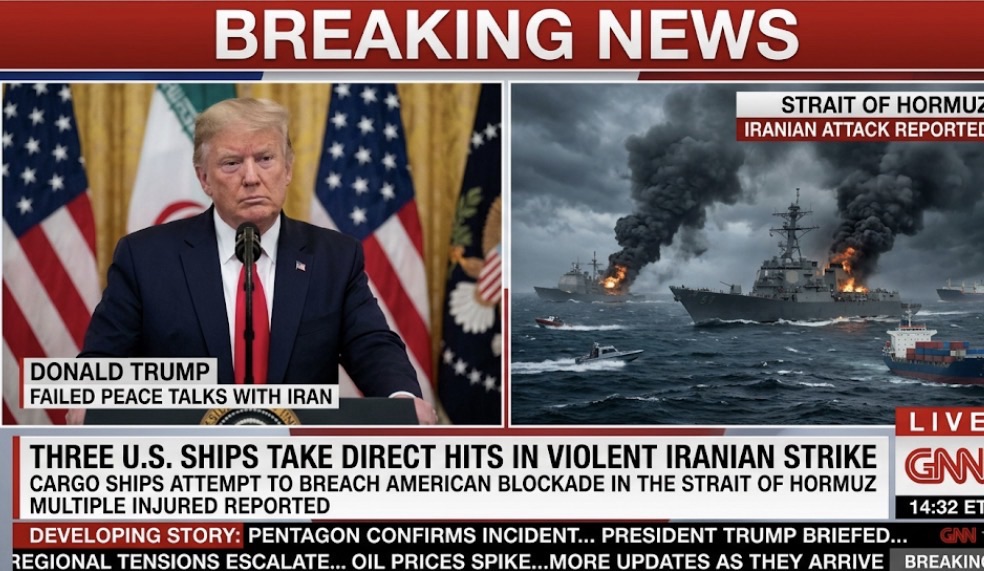 PRAYER FOR OUR TROOPS—Three U.S. Ships Take Direct Hits in Violent Iranian Strike as Cargo Ships Attempt to Breach American Blockade in the Strait of Hormuz with Multiple injured amid Donald Trump failed peace talk with Iran