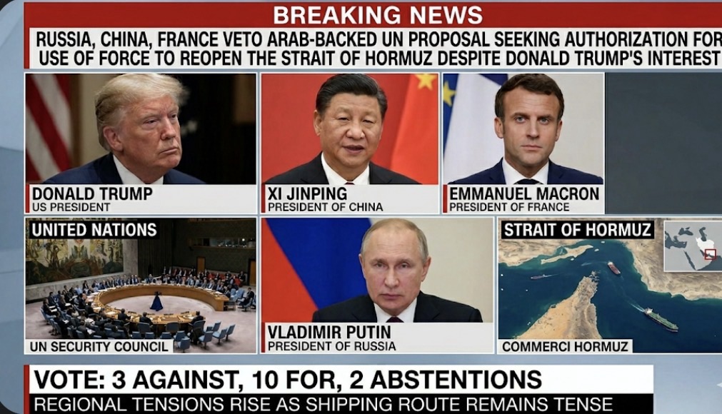 Russia, China and France Veto Arab-Backed UN Proposal Seeking Authorization for Use of Force to Reopen the Strait of Hormuz Despite Donald Trump’s Intrest