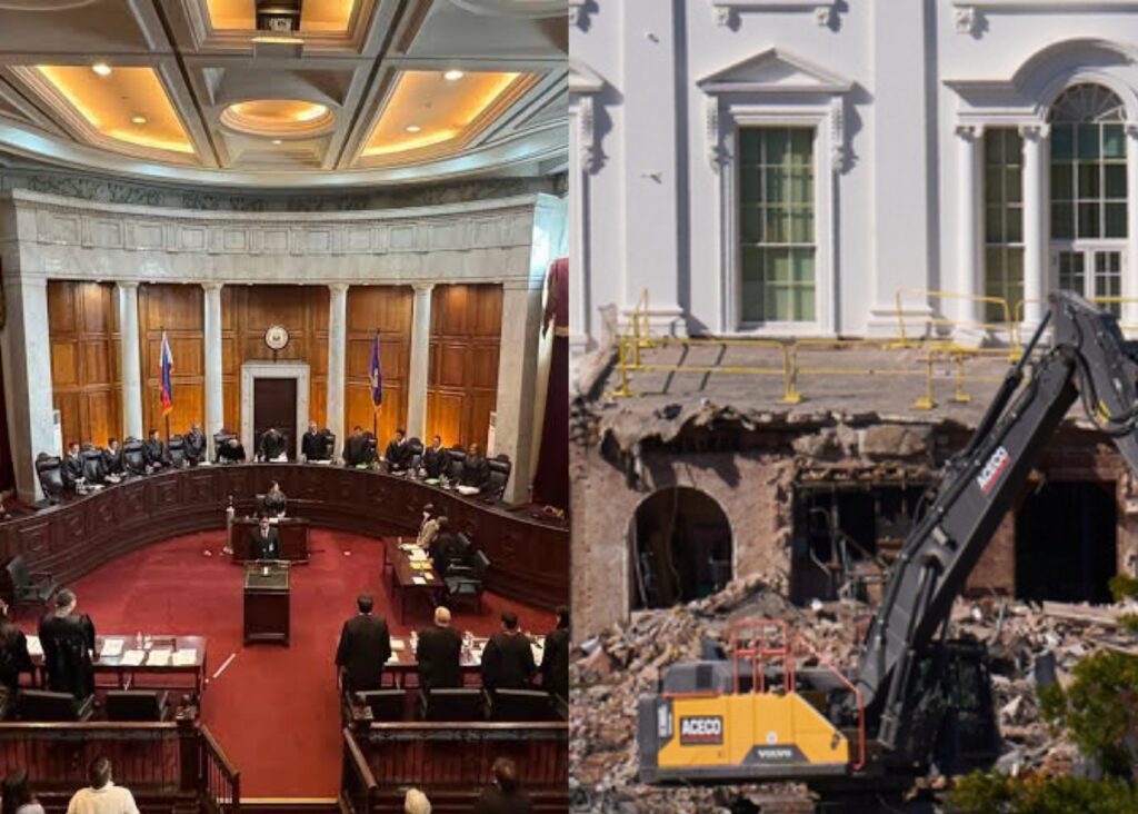 Washington, D.C. — The U.S. Supreme Court on Wednesday issued an emergency order halting all ongoing construction of former President Donald Trump’s lavish ballroom project on the White House grounds after a $5 billion lawsuit filed by the nonprofit Preserve America accused him of illegally demolishing the East Wing and violating multiple federal environmental and heritage protection laws.