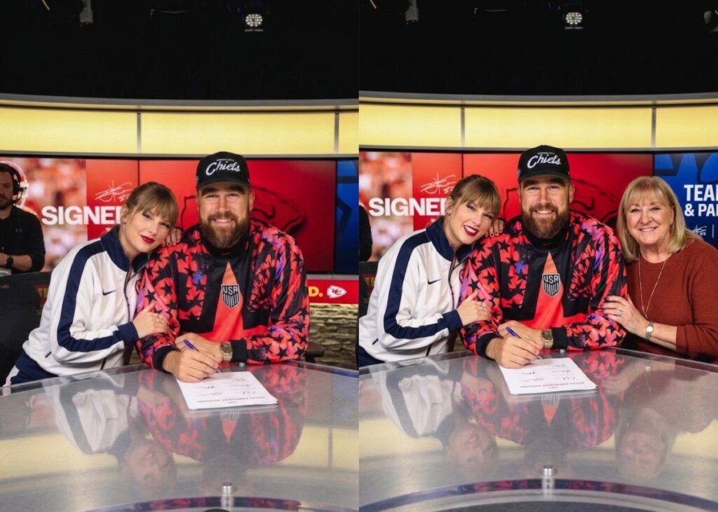 The moment, captured shortly after confirmation of Kelce’s new deal, quickly made waves online as fans celebrated both the veteran’s longevity and the strong support system around him. Standing proudly beside him, Swift and Donna Kelce added a personal, heartfelt touch to what is already a major milestone in the future Hall of Famer’s career.