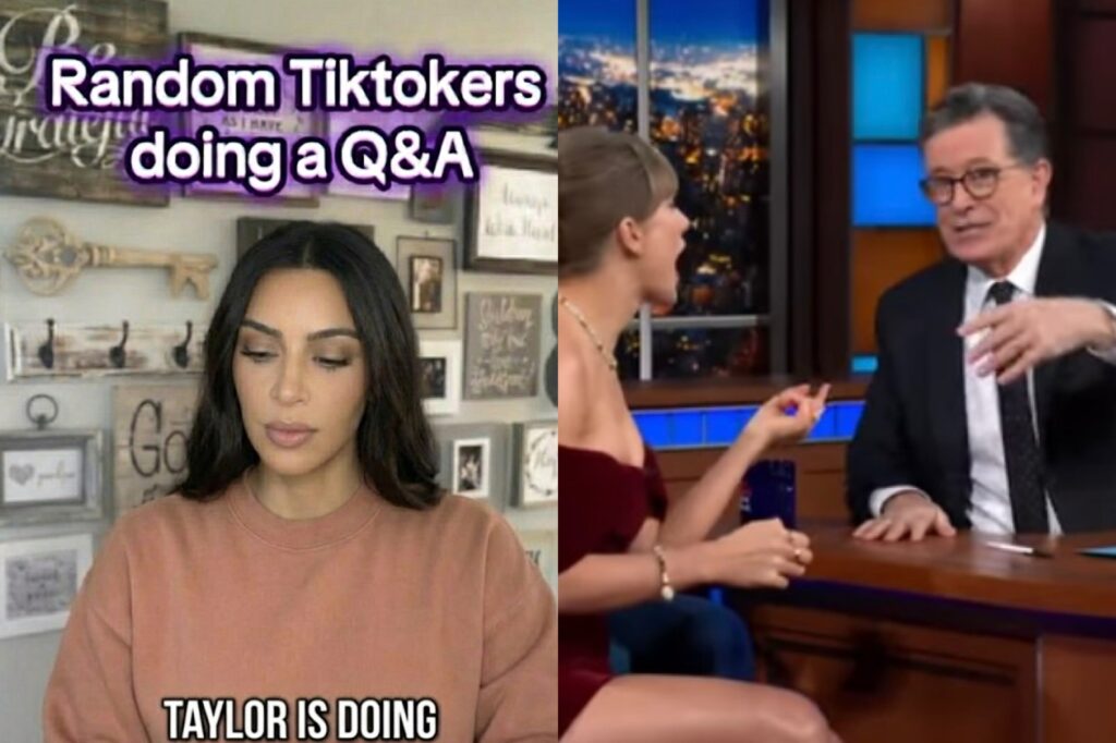 Kim Kardashian Weighs In After Bizarre TikTok Question About Taylor Swift’s Relationship and Her Buzzed-About Colbert Appearance