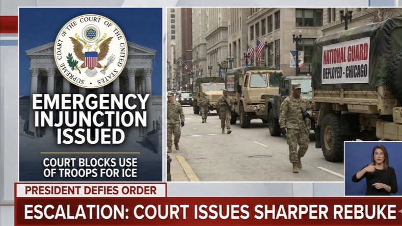 The Supreme Court Issues an Emergency Injunction and Then Escalates With a Sharper, More Forceful Order After Donald Trump Defies the Judiciary Order against Use of Troops to Protect ICE Agents In Chicago as the President Orders Immediate National Guard Deployment after the court order