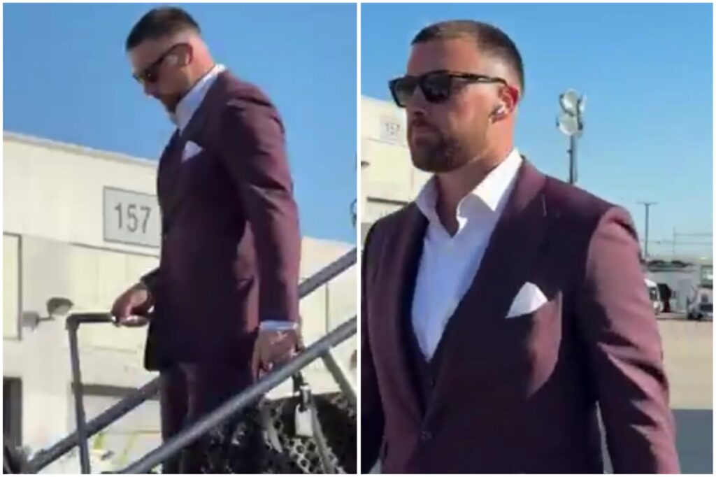 Kelce’s arrival at the airport was marked by his signature style—a sharp, maroon suit that turned heads and signaled confidence despite the team’s early season setbacks. The image of Kelce descending the airplane stairs, suitcase in hand, resonated with fans and analysts alike, symbolizing a team determined to reclaim its form.
