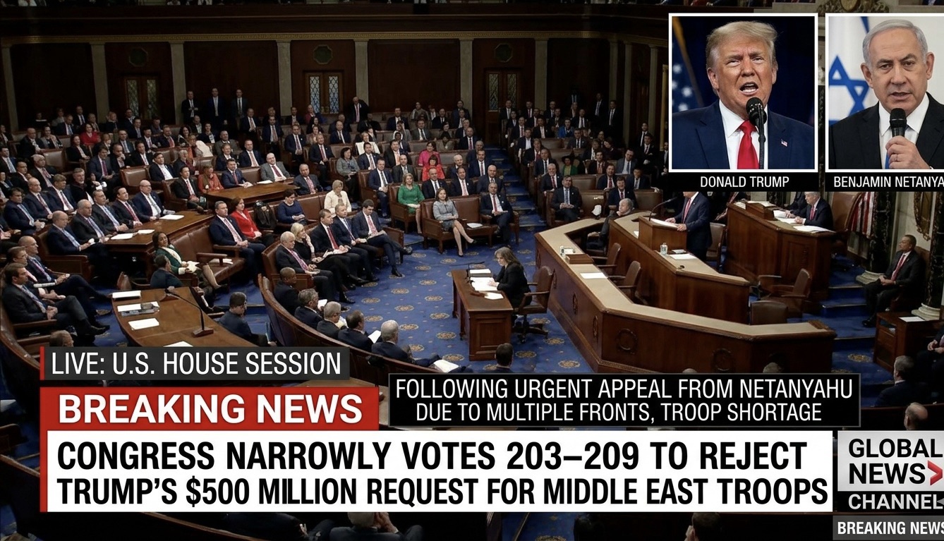 United States Congress Narrowly Votes 203–209 to Reject Donald Trump’s $500 Million Request to Fund Additional Troop Deployment to the Middle East Following Urgent Appeal from Benjamin Netanyahu due to shortage of Troops due to fighting Multiple Fronts