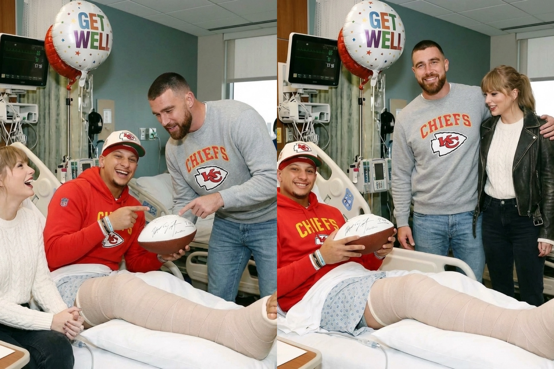 Just days after the devastating snap that silenced Arrowhead Stadium, a heartwarming scene unfolded at a Kansas City hospital. Patrick Mahomes, recovering from surgery to repair a torn ACL suffered in Sunday’s clash against the Los Angeles Chargers, received a high-profile surprise visit from his “brother” Travis Kelce and pop superstar Taylor Swift.