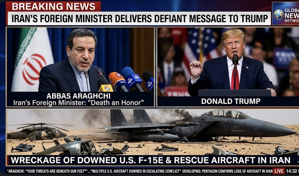 “Your Threats Are Beneath Our Feet”: Iran’s Foreign Minister Abbas Araghchi Delivers Defiant Message to Donald Trump, Declaring Death an Honor After Downing U.S. F-15E Strike Eagle and Multiple Rescue Aircraft in Escalating Iran War